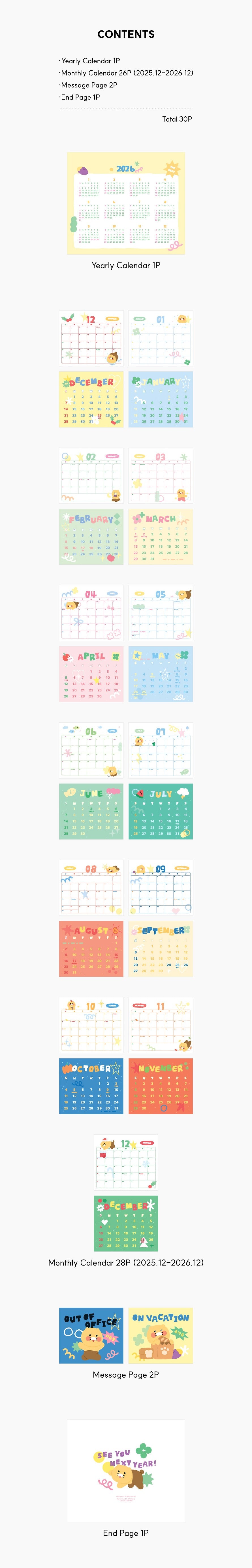 Cute and colorful 2026 desk calendar featuring Chunsik in pink and Green