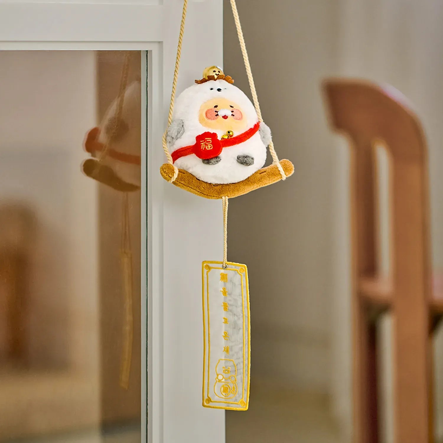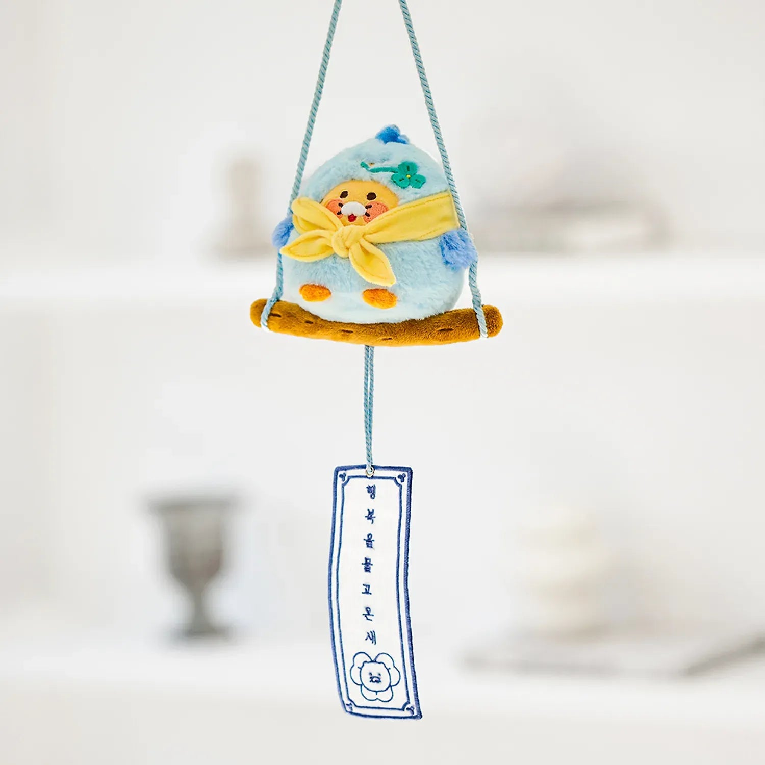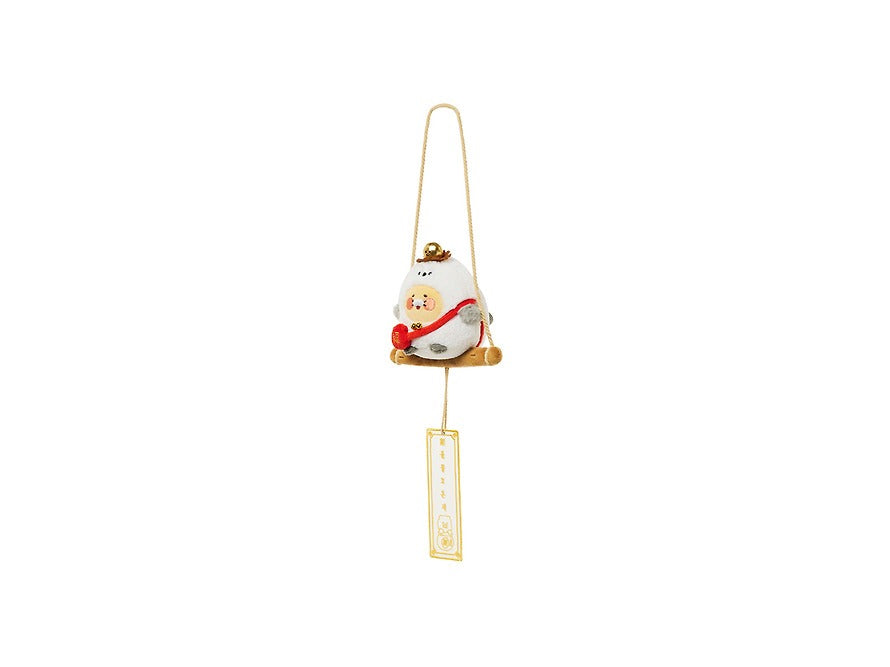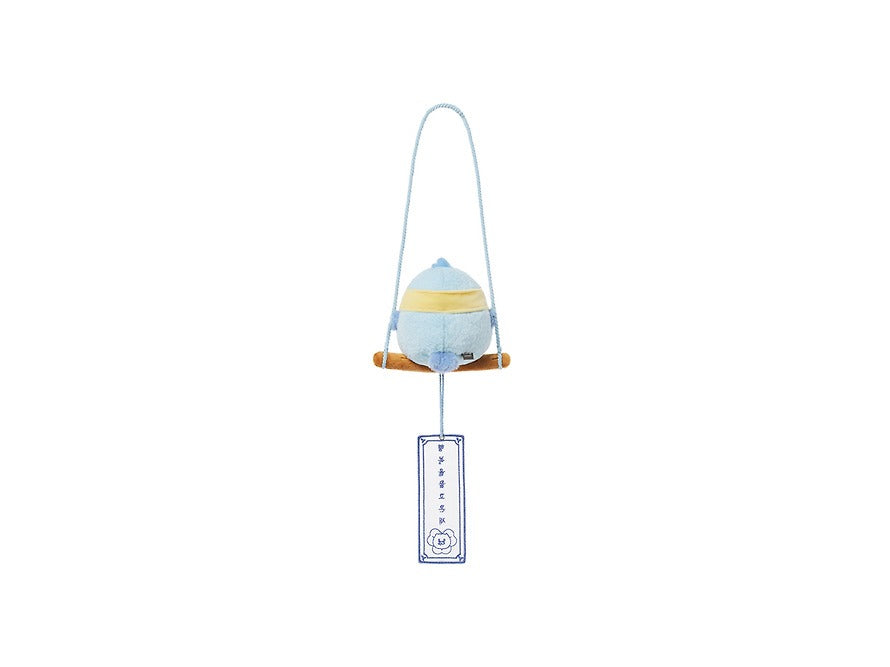 This hanging plush ornament features Chunsik riding a lucky bird, symbolizing good fortune and positive energy.