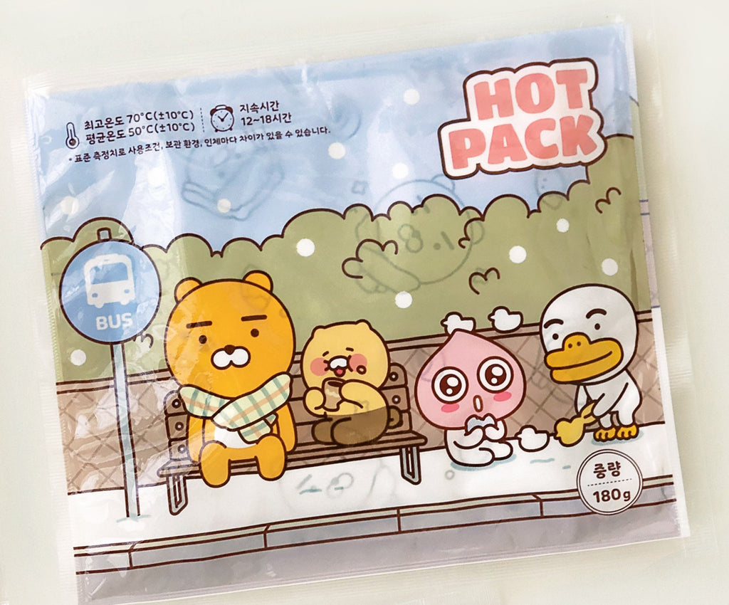 The Kakao Friends hot pack holder keeps your hands warm anytime, anywhere.Its adorable character design adds charm while offering practical warmth.Reusable and lightweight, it is ideal for carrying in your bag or pocket.