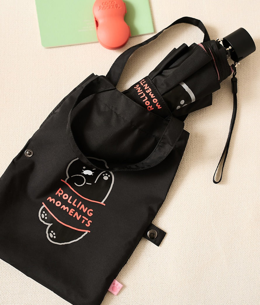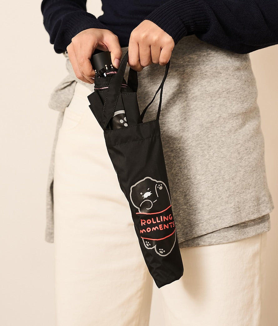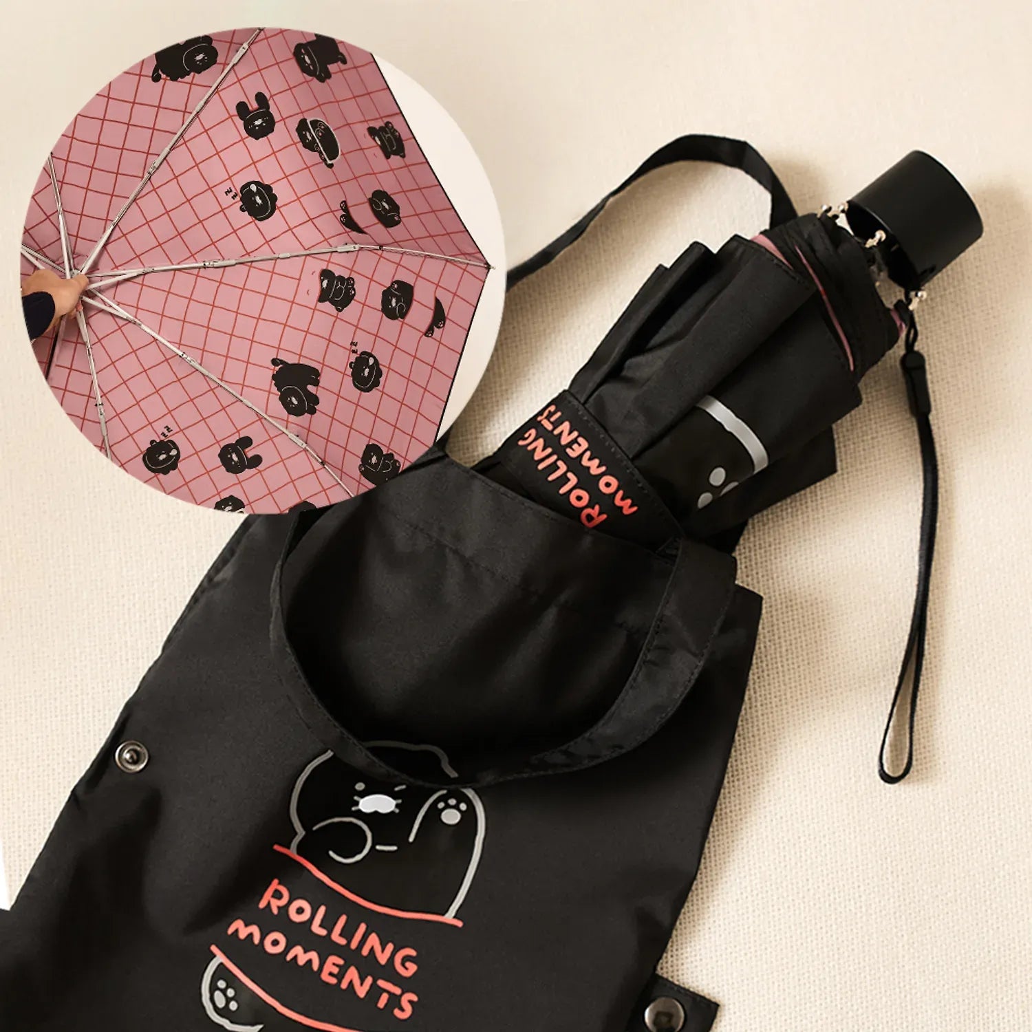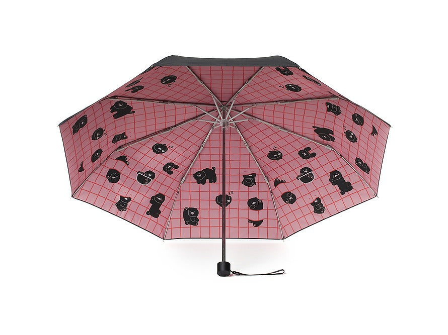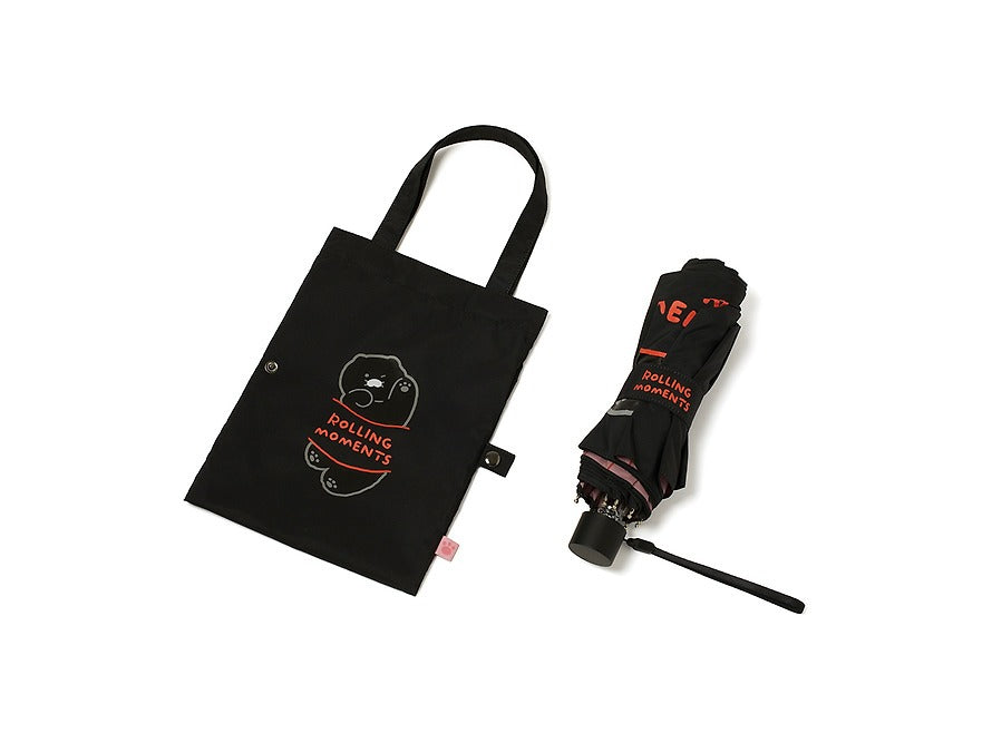 A compact umbrella with a matching mini pouch featuring Black Choonsik design.