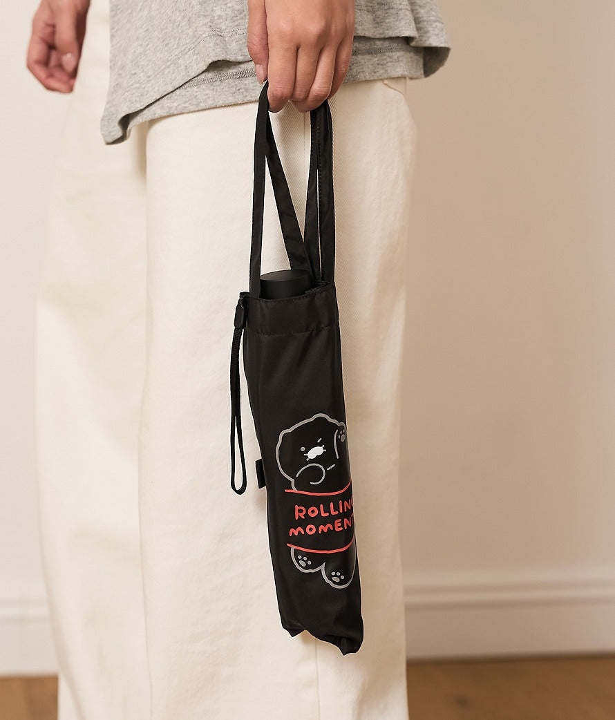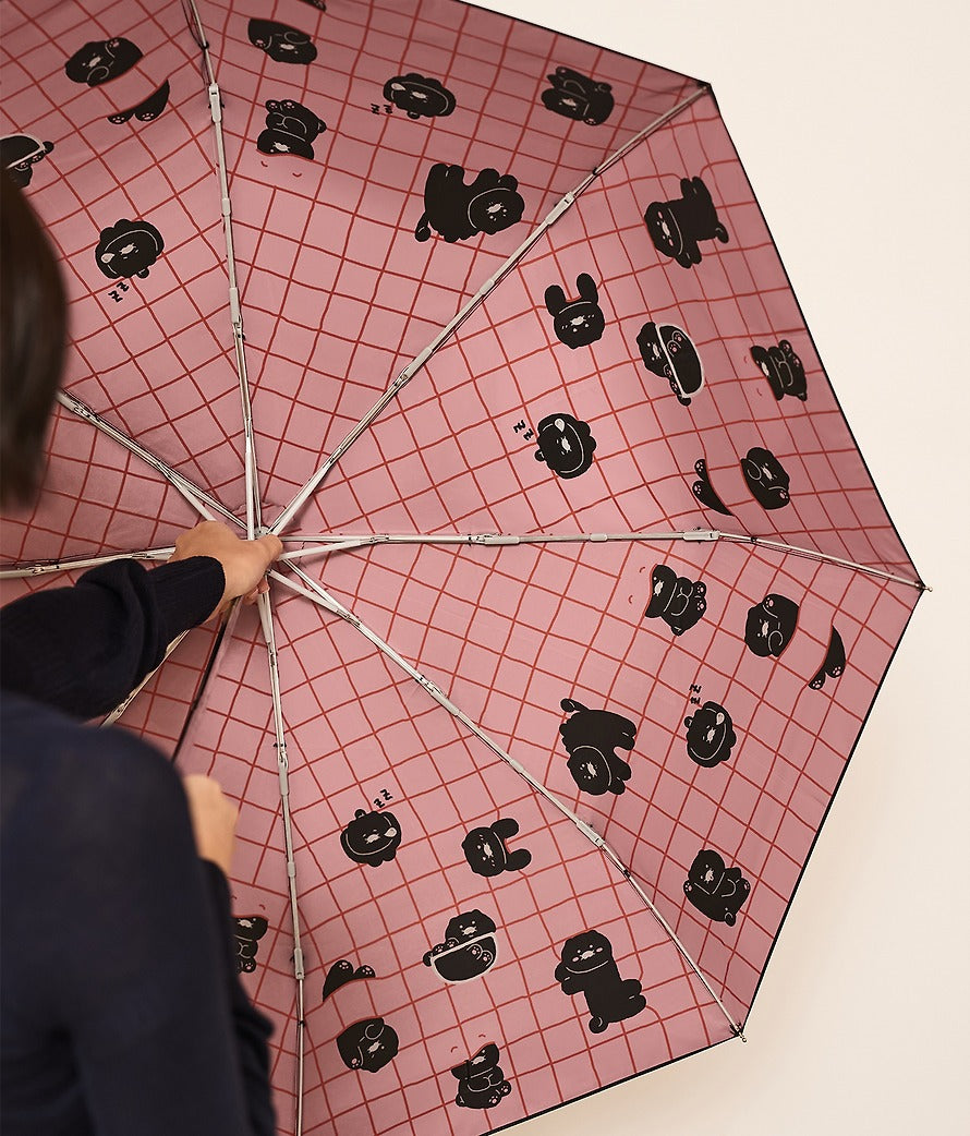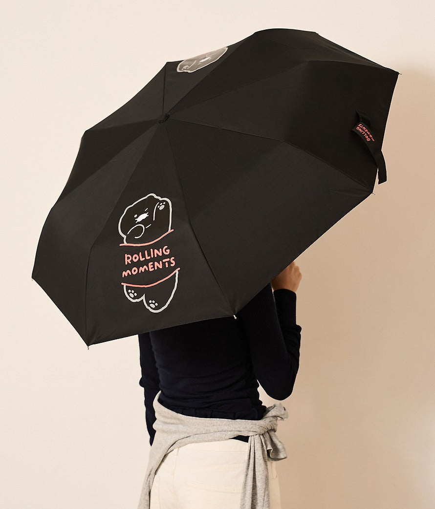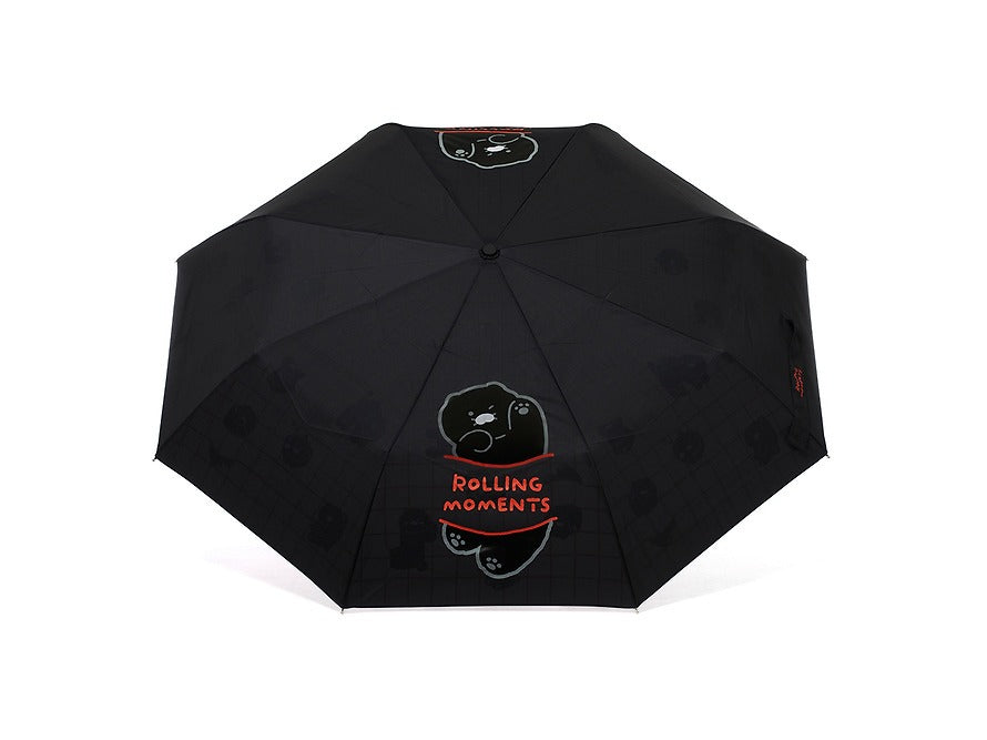A compact umbrella with a matching mini pouch featuring Black Choonsik design.