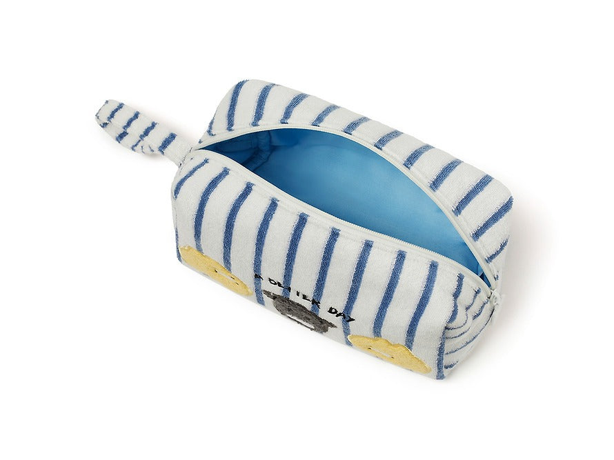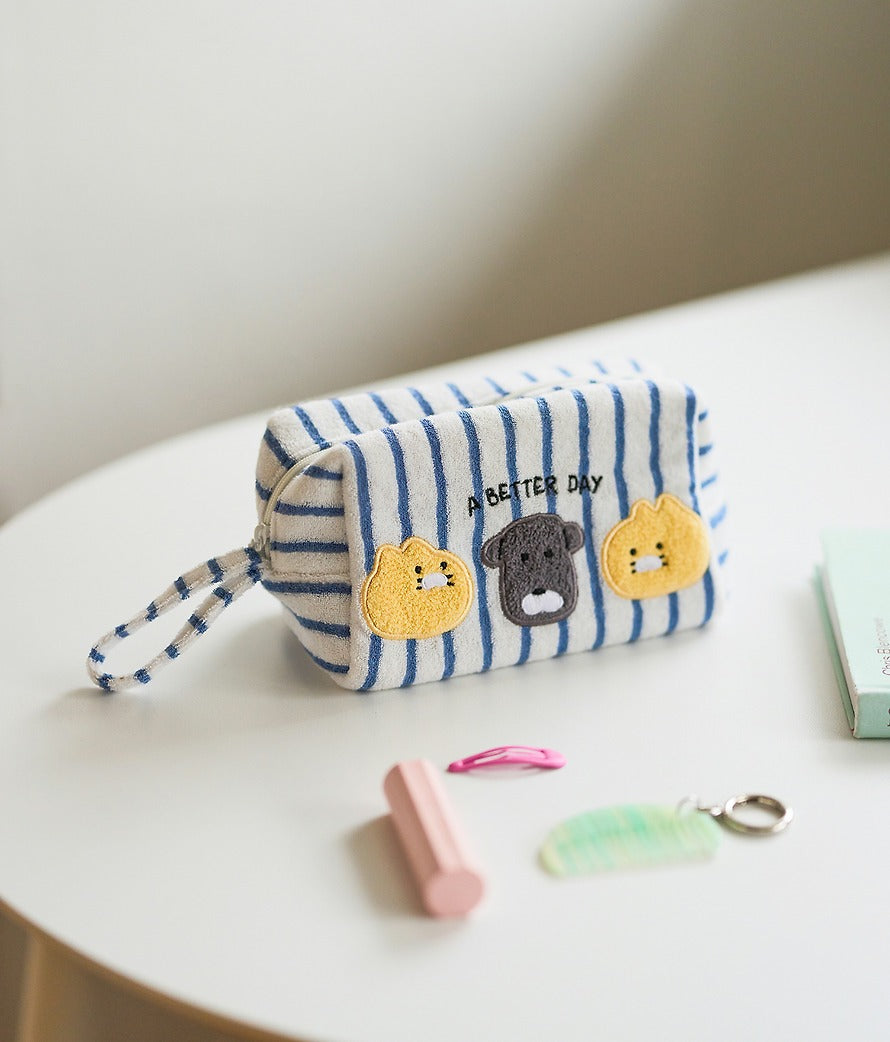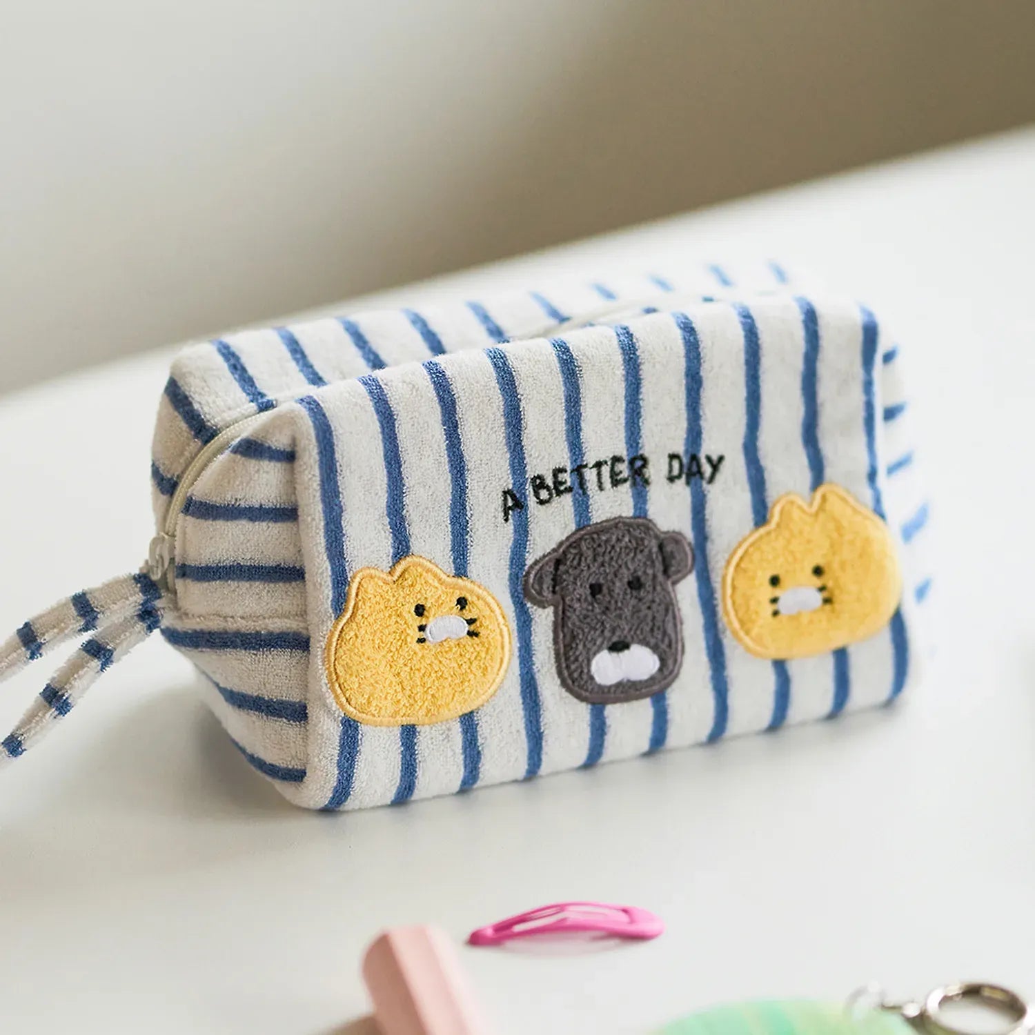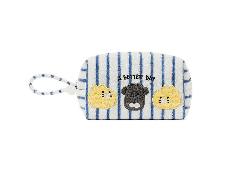 Made with soft terry fabric and featuring cute Chunshik character details this pouch is perfect for cosmetics travel items or daily use.