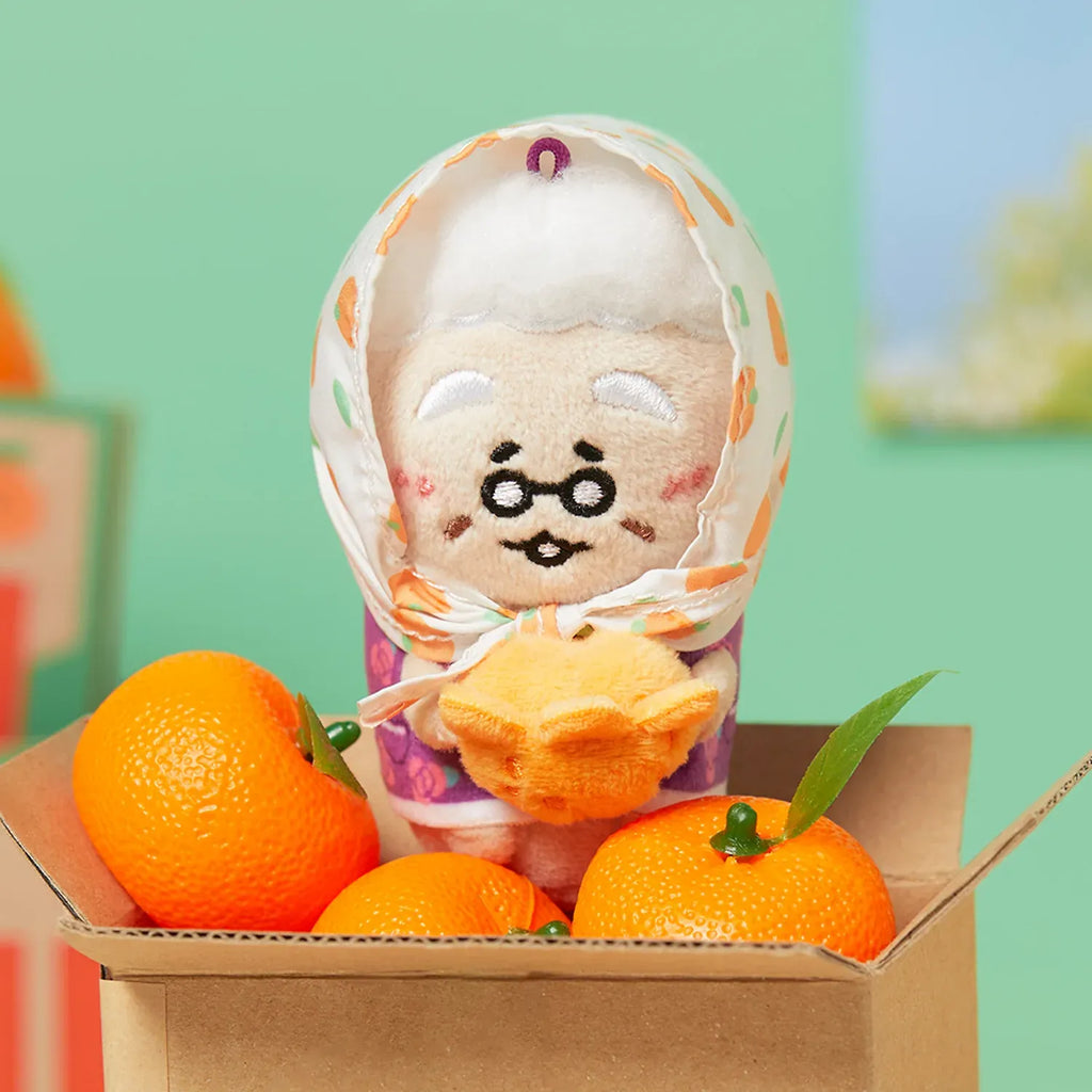 Cute Jjoordi mini plush styled as HalmiJjyo from the Jeju series.A cozy and charming collectible to bring Jeju vibes anywhere.